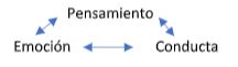 La terapia cognitivo conductual comprende nuestros pensamientos, conductas y emociones. Nuestro pensamiento evalúa una situación. Tras ello decide si debemos hacer algo en coonsecuencia a esa evaluación. Posteriormente, y dependiendo del refuerzo obtenido, y la emoción asociada, lo repetiremos, o no.